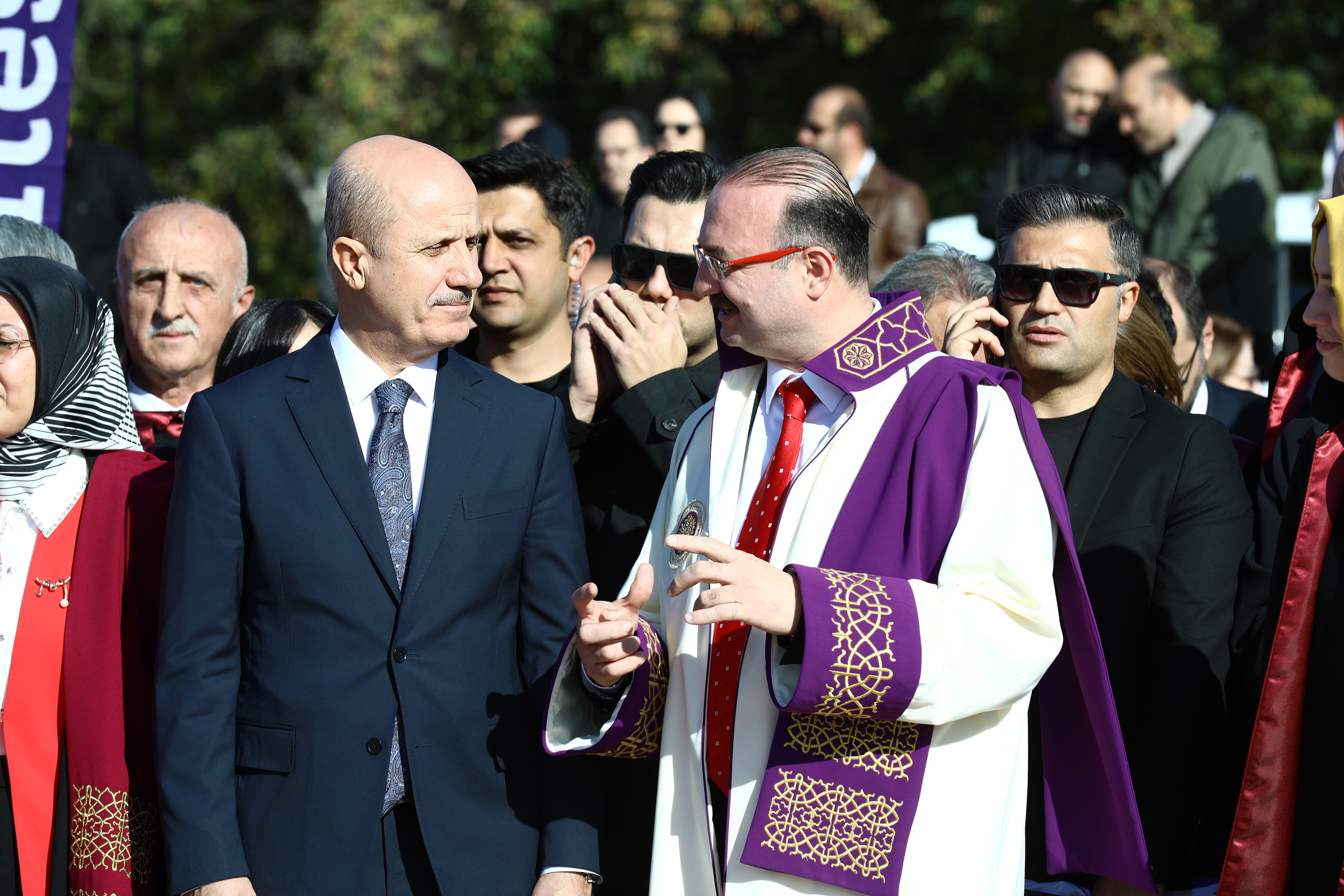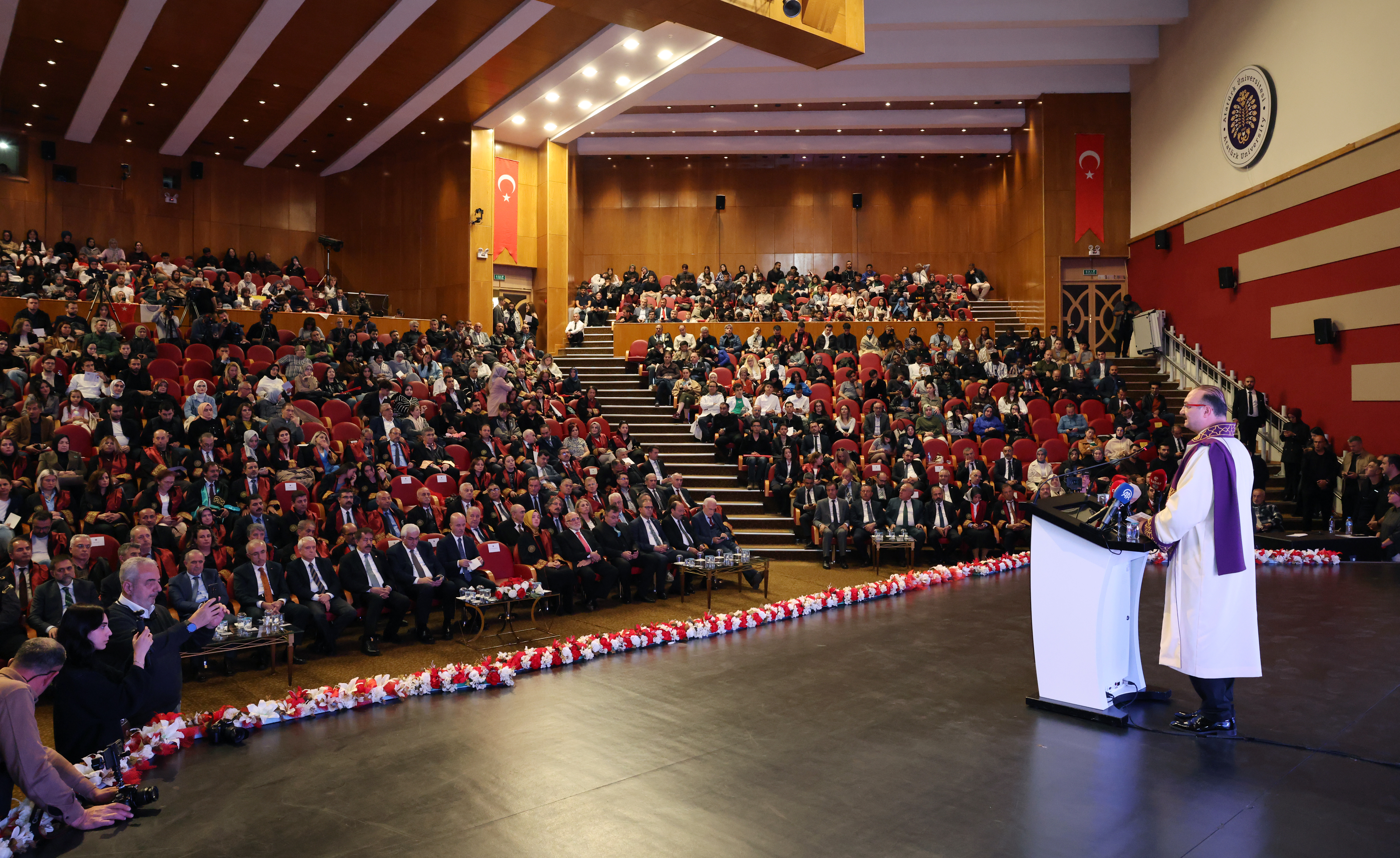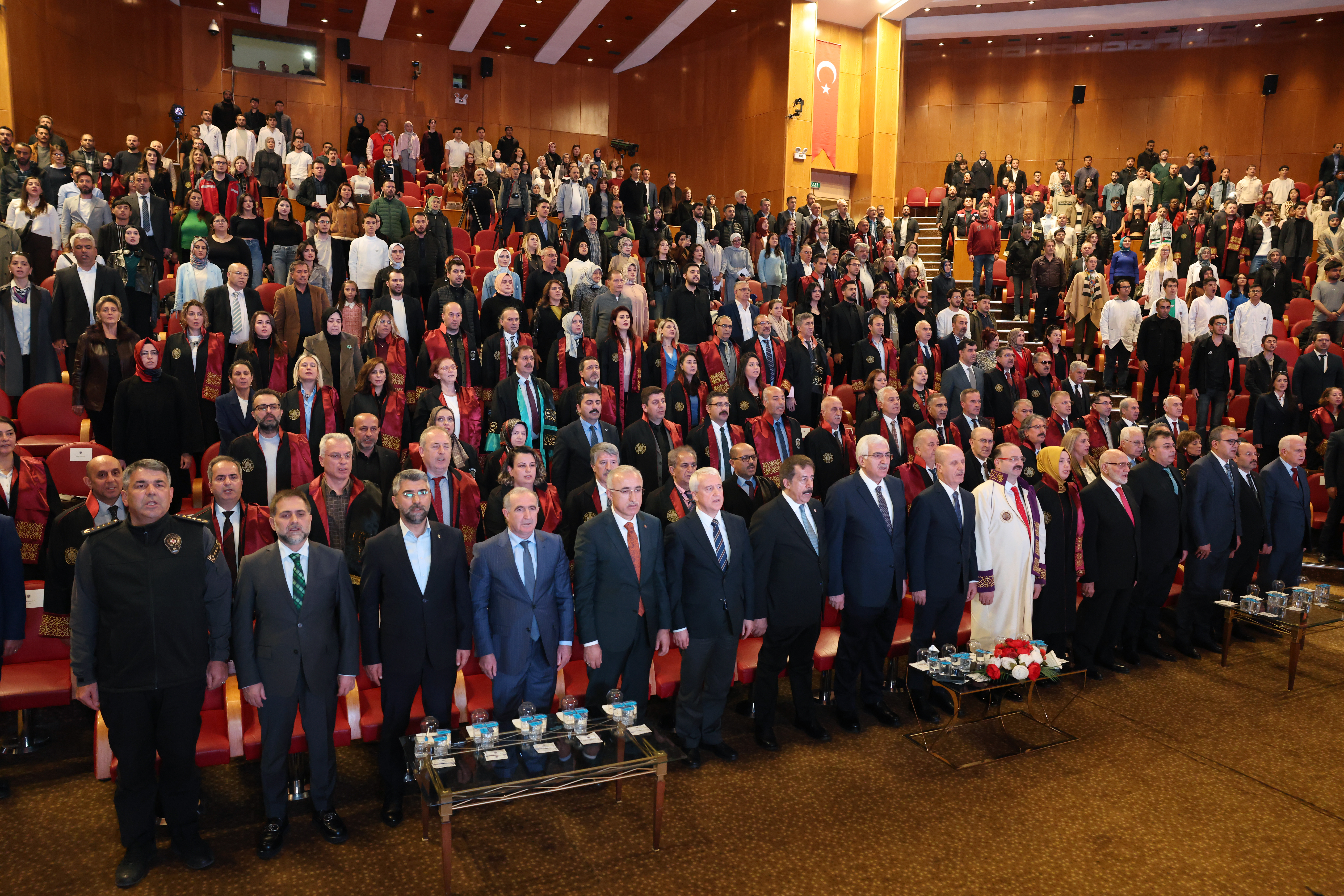 Konuşmasının devamında Erzurum’un köklü ilim ve irfan geleneğine değinen Rektör Hacımüftüoğlu, Atatürk Üniversitesinin bu mirastan beslenerek 68 yıldır bilim yolculuğunu sürdürdüğünü belirtti. Üniversitenin 23 fakülte, 12 meslek yüksekokulu, 1 konservatuvar, 9 enstitü ve 44 araştırma merkeziyle güçlü bir akademik yapıya sahip olduğunu aktaran Hacımüftüoğlu, toplam 63 bin örgün öğrencinin yanı sıra açık ve uzaktan öğretim programlarında yer alan 578 bin öğrenciyle birlikte 640 bine ulaşan öğrenci sayısıyla Atatürk Üniversitesinin adeta bir kültürler buluşma noktası olduğunu kaydetti.